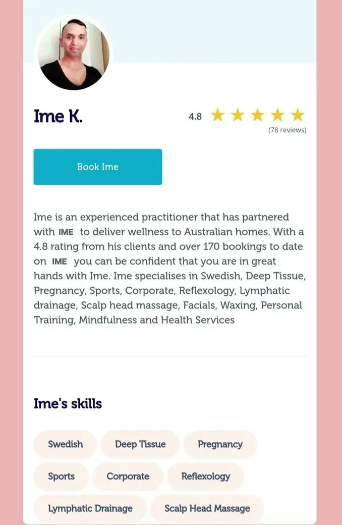 Mr. IME KING is Australian Diploma holder in Remedial, Sports, lymphatic drainage massage, pregnancy massage, beauty therapy and holistic wellness with 9yrs experience.